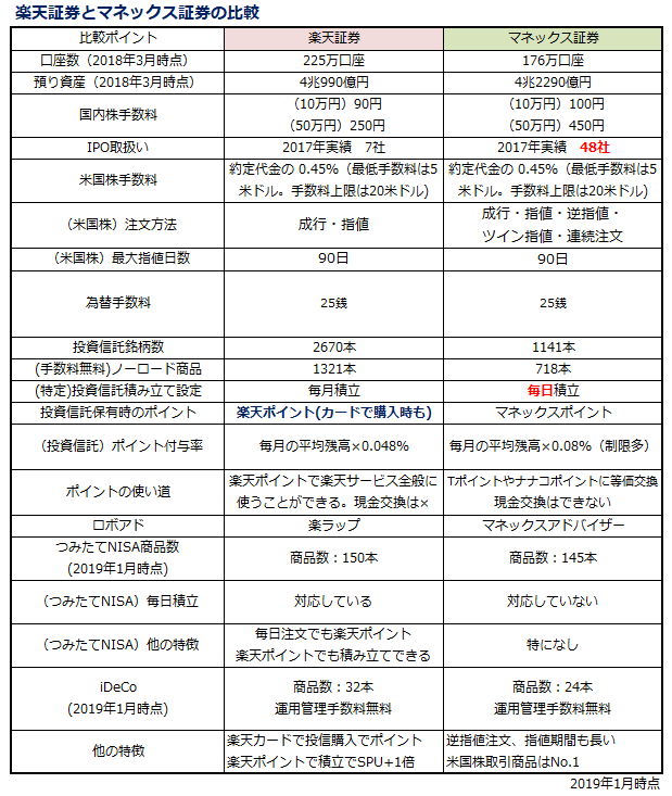 - 楽天証券とマネックス証券の一覧比較